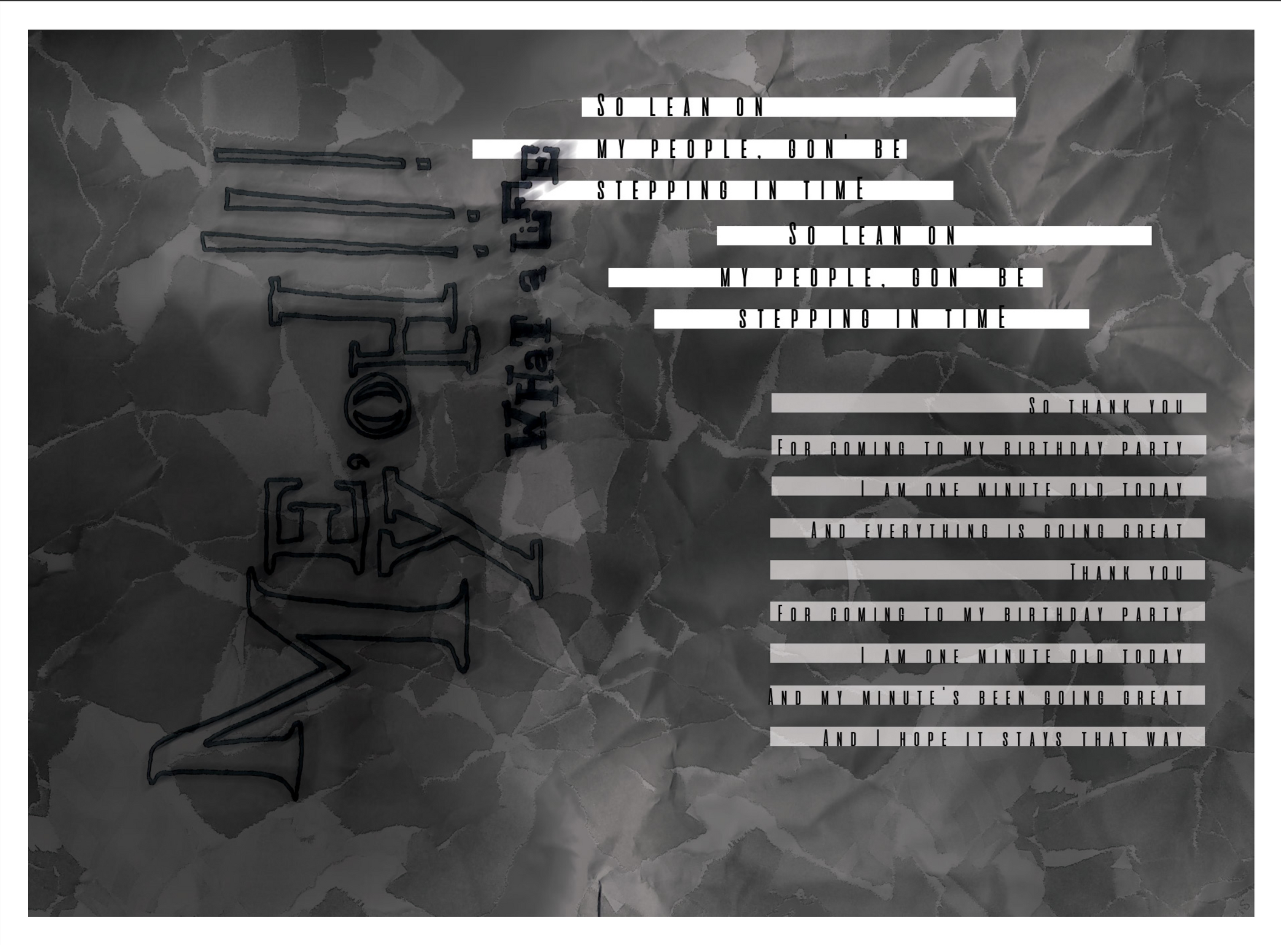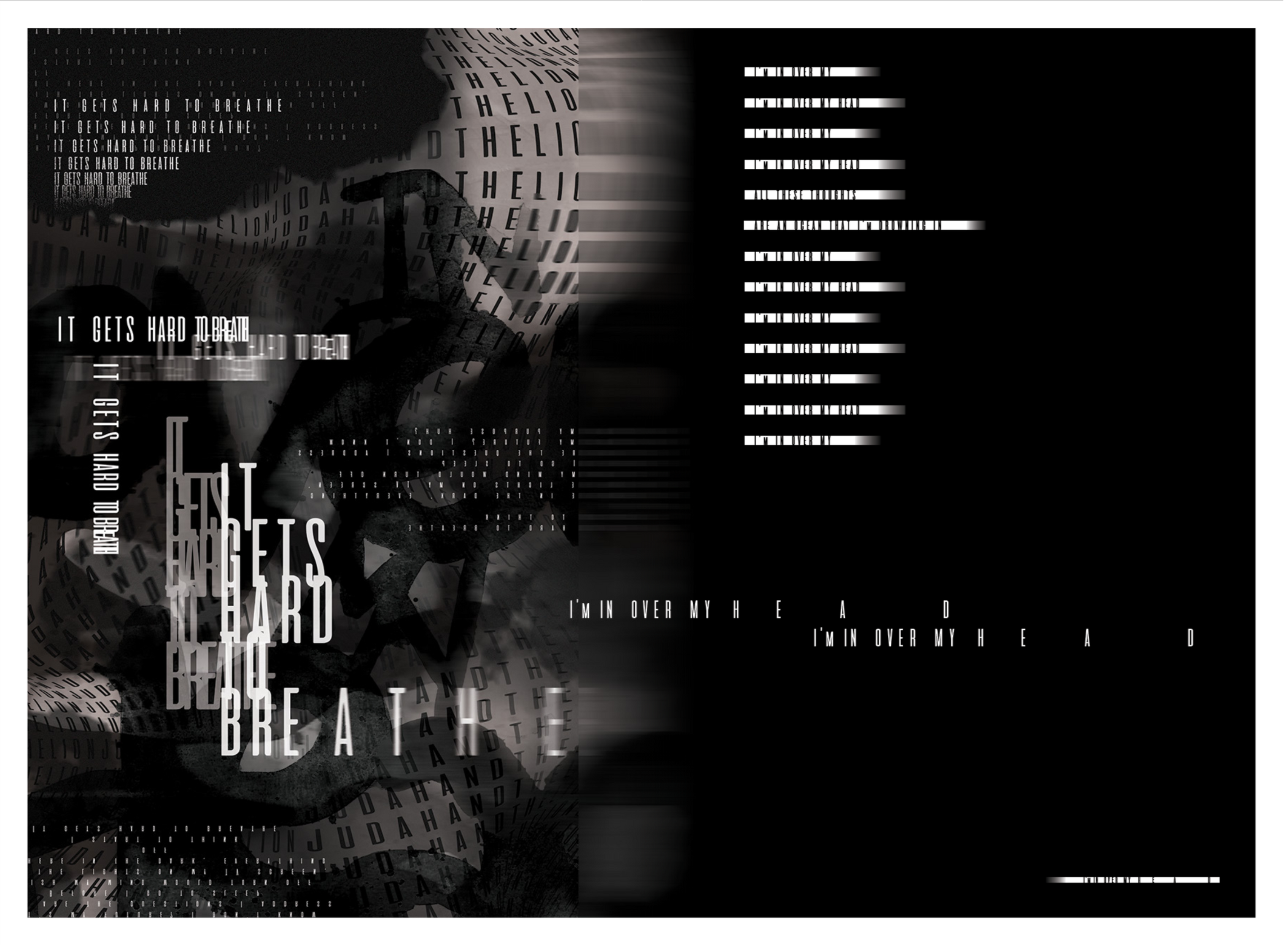 A lyrical newspaper with unique type techniques featuring ‘Over My Head’ by Judah and the Lion and ‘Birthday Party’ by AJR.