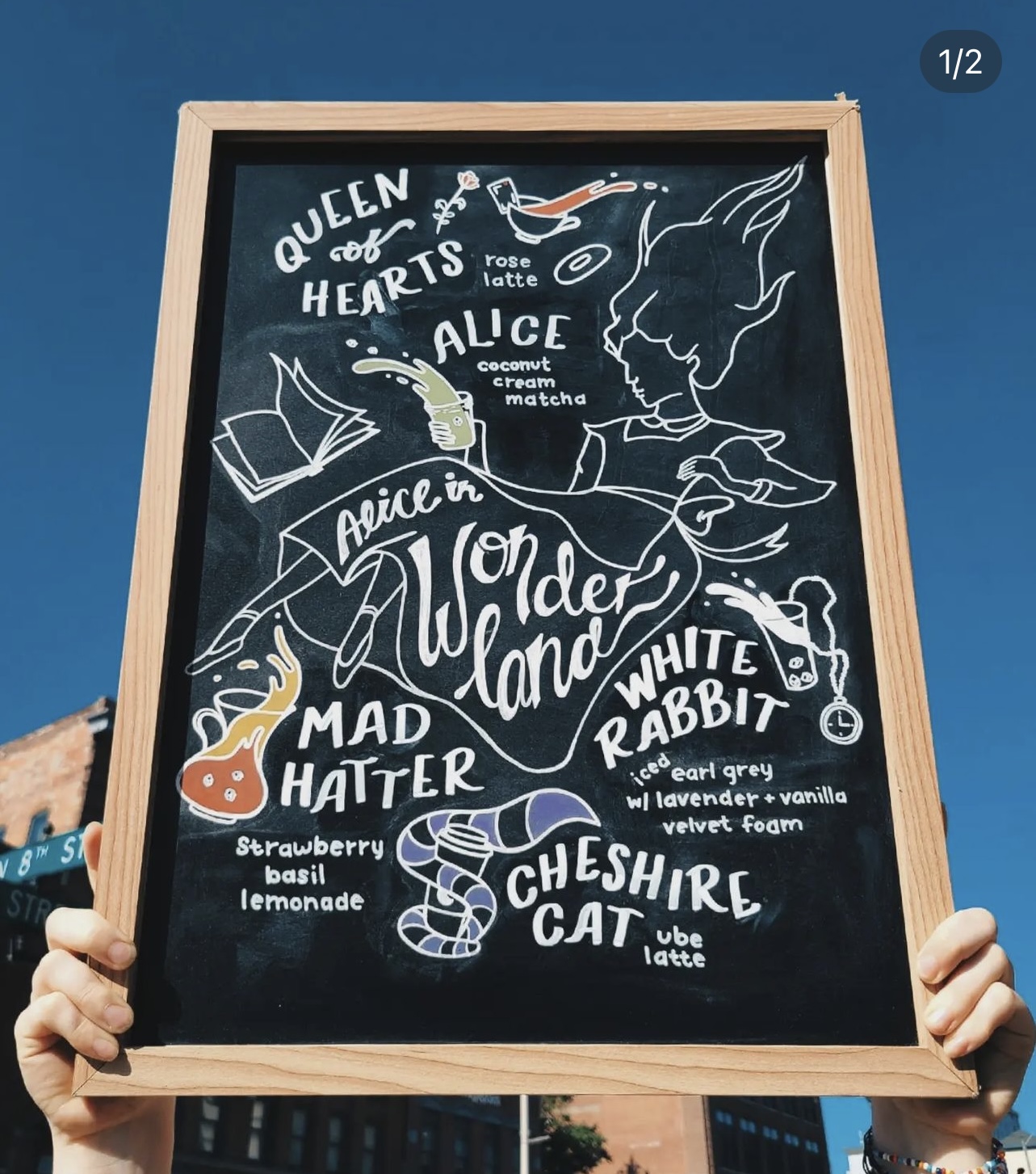 A collection of my hand-drawn chalkboard feature menus at Crescent Moon Coffee in Lincoln, Nebraska.